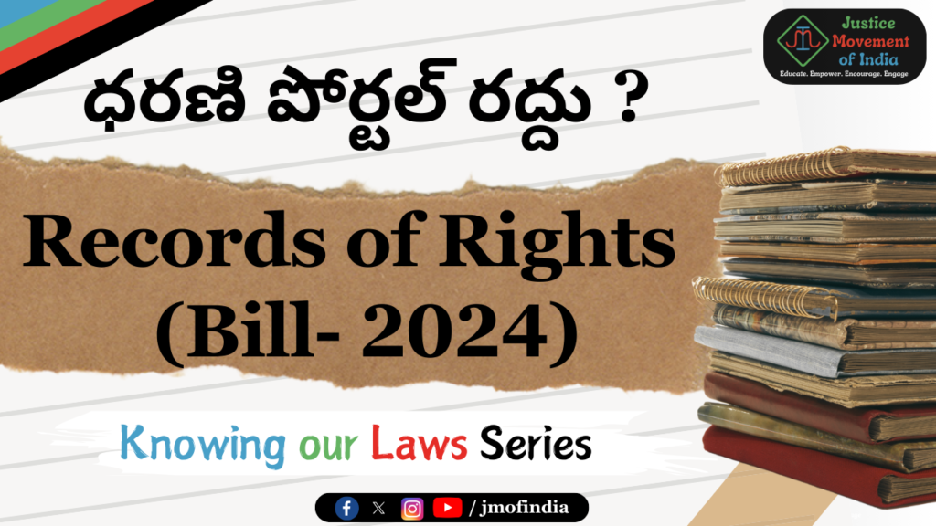 ధరణి పోర్టల్ రద్దు ? ROR -2024 Bill | Knowing Our Laws As part of the Justice Movement of India’s Knowing Our Laws initiative, we recently hosted an engaging session titled “ధరణి పోర్టల్ రద్దు? ROR-2024 బిల్లు” to shed light on the complexities of land reforms and property rights in Telangana. This session aimed to help citizens