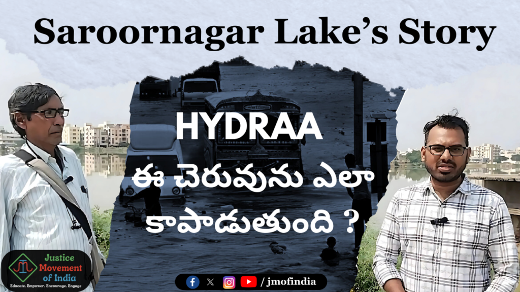 HYDRA ఈ చెరువును ఎలా కాపాడుతుంది ? | Hyderabad | Saroornagar Lake | Flood Free Hyderabad On October 27th, as part of the #FloodFreeHyderabad campaign, Justice Movement of India (JMI) organisers visited Saroornagar Lake in Hyderabad. The visit highlighted the critical role the lake plays in the local community’s lives and the devastating impact of its