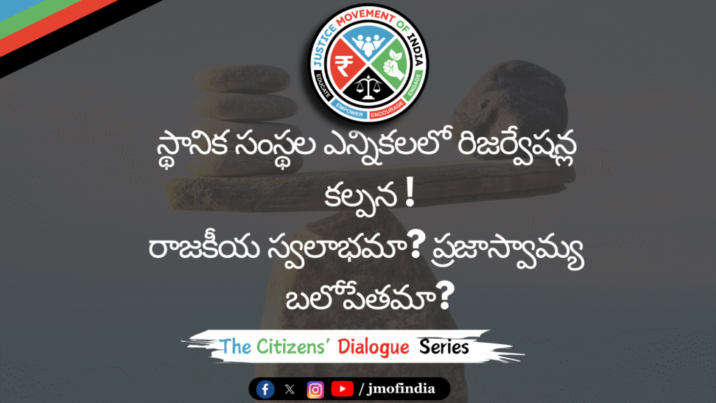 స్థానిక సంస్థల ఎన్నికలలో రిజర్వేషన్ల కల్పన ! | Citizen’s Dialogue | #telangana #telugu #elections స్థానిక సంస్థల ఎన్నికలలో రిజర్వేషన్లు రాజకీయ స్వలాభమా లేక ప్రజాస్వామ్య బలోపేతమా? 🗳️ ఈ కీలక అంశంపై సమగ్ర విశ్లేషణ, భిన్న దృక్కోణాలు, లోతైన చర్చతో మీ ముందుకు వస్తోంది “పౌరుల సంభాషణ”. సమాన అవకాశాల కల్పన, సామాజిక న్యాయం, పాలనలో అట్టడుగు వర్గాల భాగస్వామ్యంపై రిజర్వేషన్ల ప్రభావం ఎలా ఉంటుంది? ఈ చర్చలో పాల్గొని మీ అభిప్రాయాలను