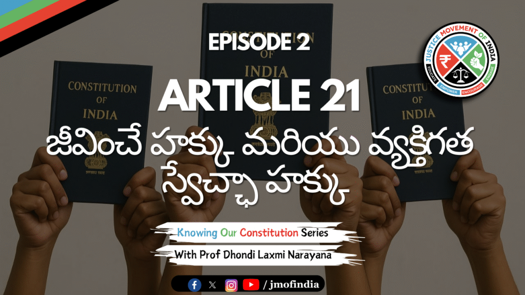 Article 21 జీవించే హక్కు మరియు వ్యక్తిగత స్వేచ్ఛా హక్కు| Knowing Our Constituition | Ep 2 | Prof. Dhondi Laxmi Narayana #constitution #india 🇮🇳 భారత రాజ్యాంగం (Indian Constitution) | ఆర్టికల్ 21 (Article 21) | జీవించే హక్కు మరియు వ్యక్తిగత స్వేచ్ఛా హక్కు (Right to Life and Personal Liberty) భారత రాజ్యాంగంలోని అత్యంత ముఖ్యమైన, విశాలమైన ఆర్టికల్ 21 గురించి మీకు తెలుసా? జీవించే హక్కు అంటే […]